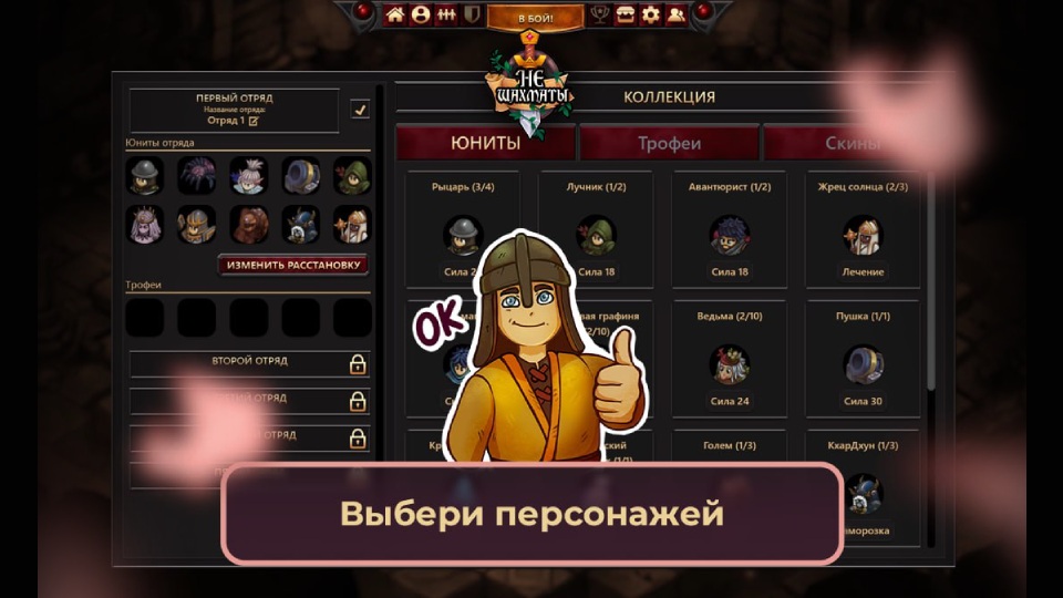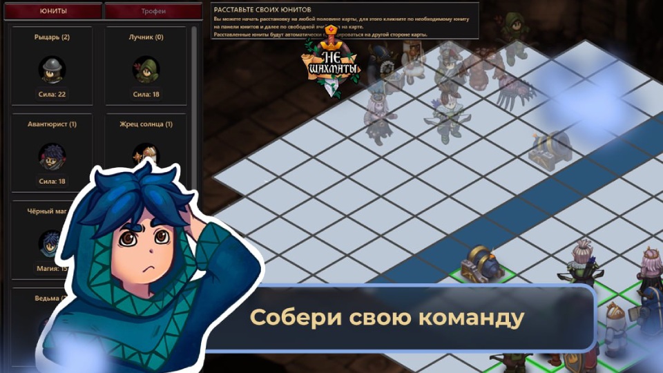 Классическая тактика в стиле старых игр. Правильность ходов, формирование отряда и синергия юнитов приведут к победе!